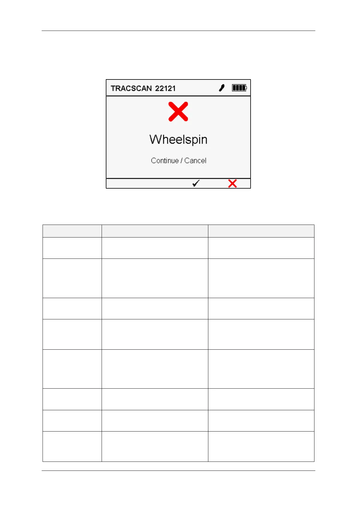The following table lists all error types, the probable error cause and how the error could be