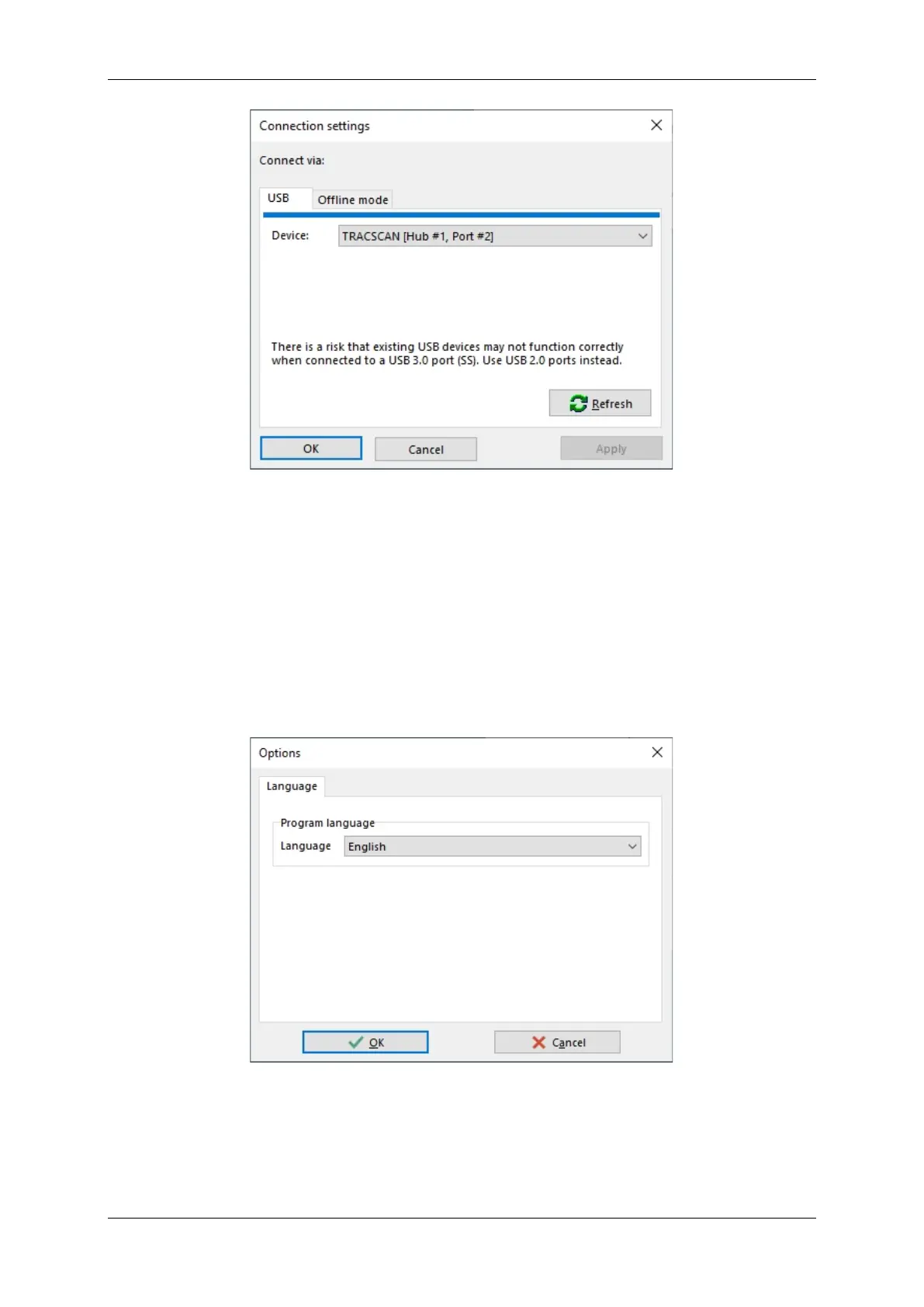 • If no device (instrument) is displayed, press Refresh to re-scan the USB ports. If an instru-