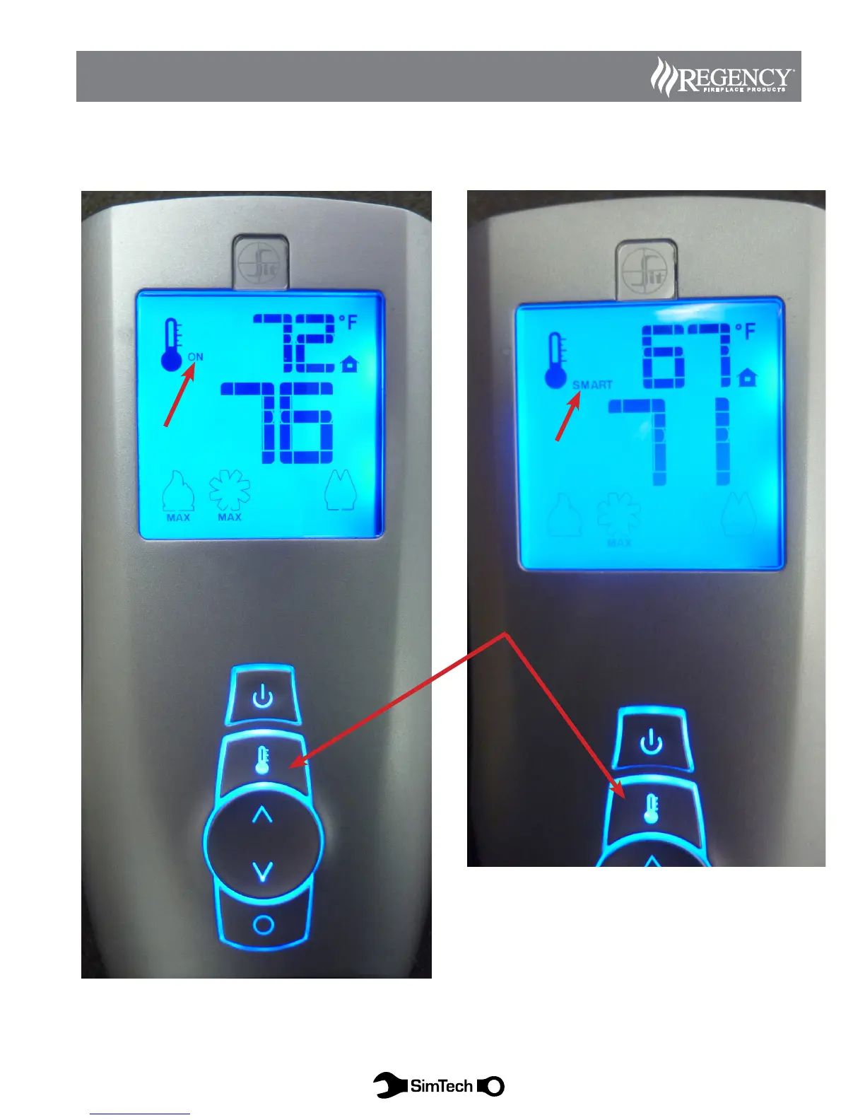 This example shows the remote in Thermostat mode and Smart Stat mode.