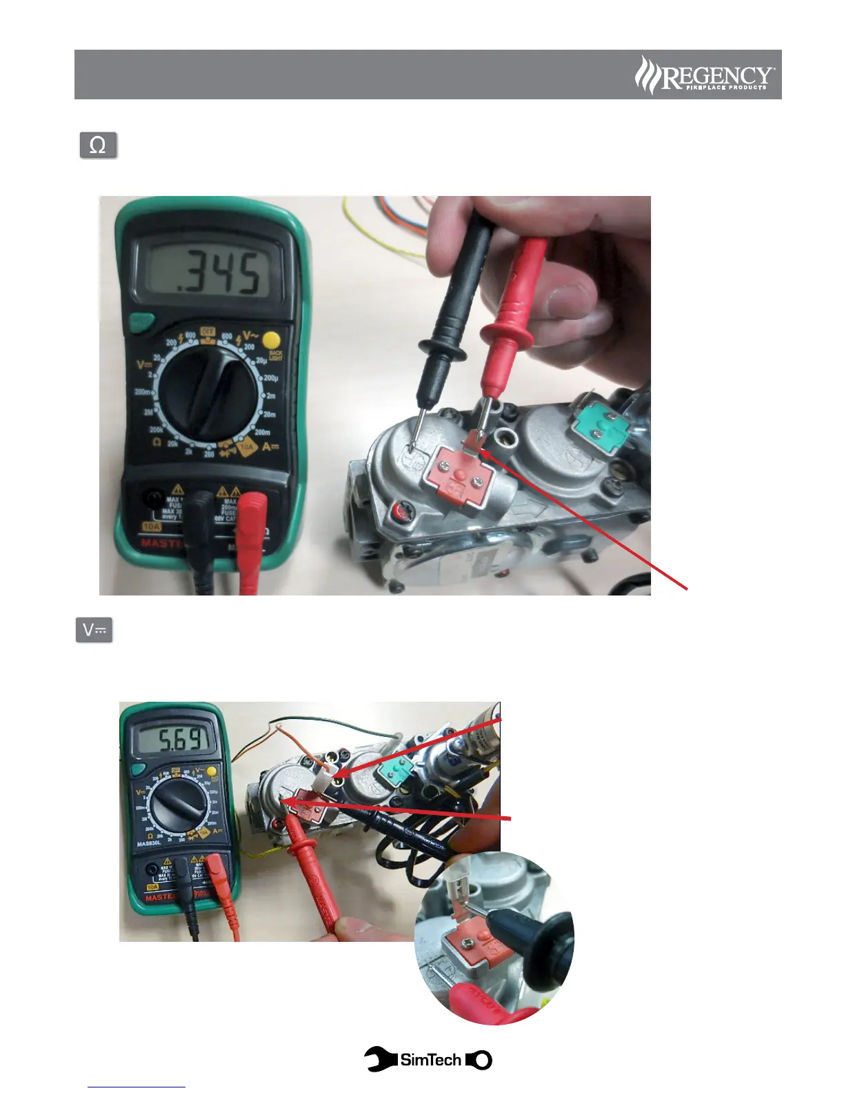 probe to the EV1 terminal (orange) and one probe to the valve body (ground). Turn pilot on and watch meter carefully, for