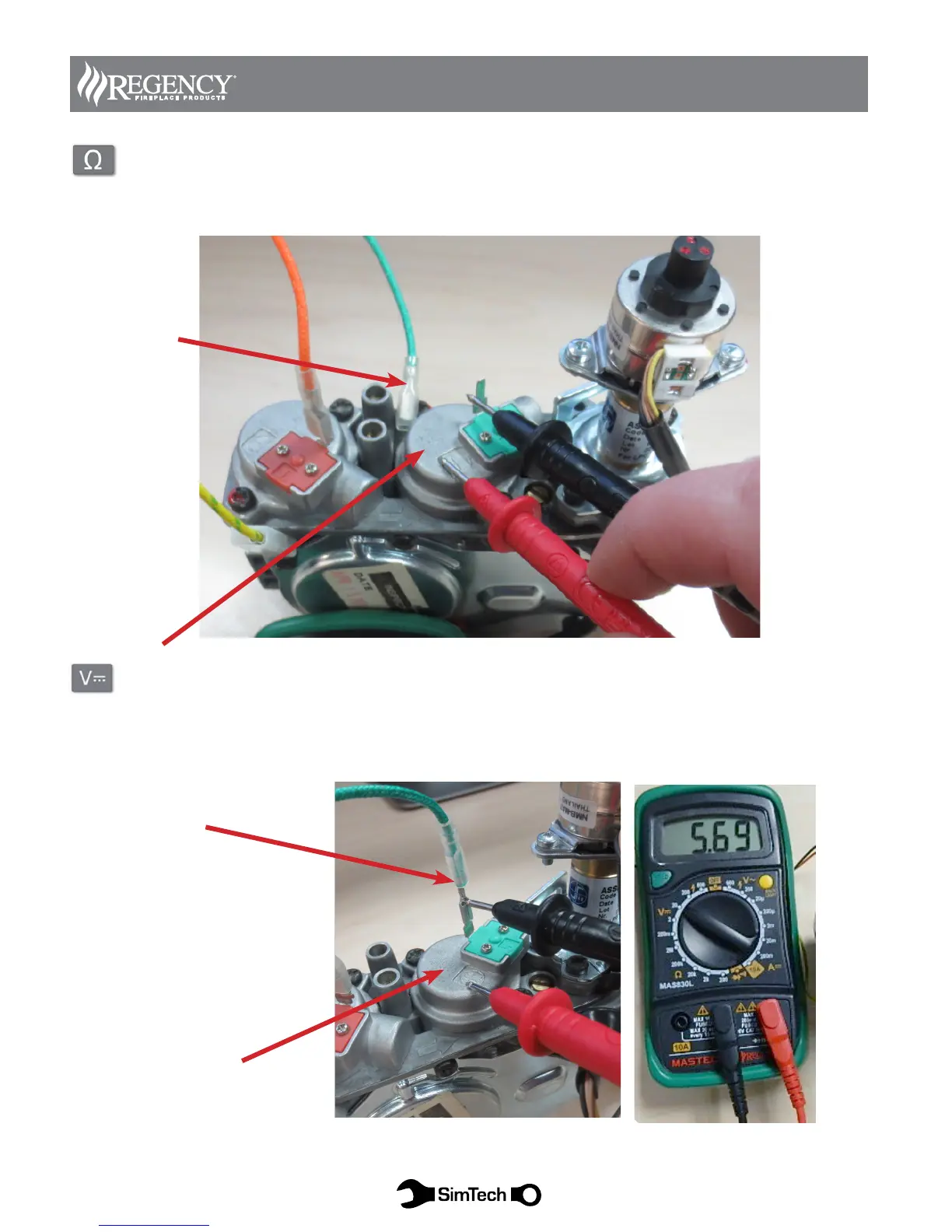 to the EV2 terminal (green) and one probe to the valve body (ground). Turn burner on and watch meter carefully, for ap-