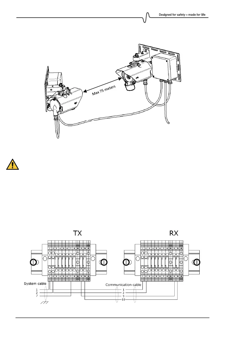 Wiring diagrams are shown below. The system cable only goes to the transmitter unit. The