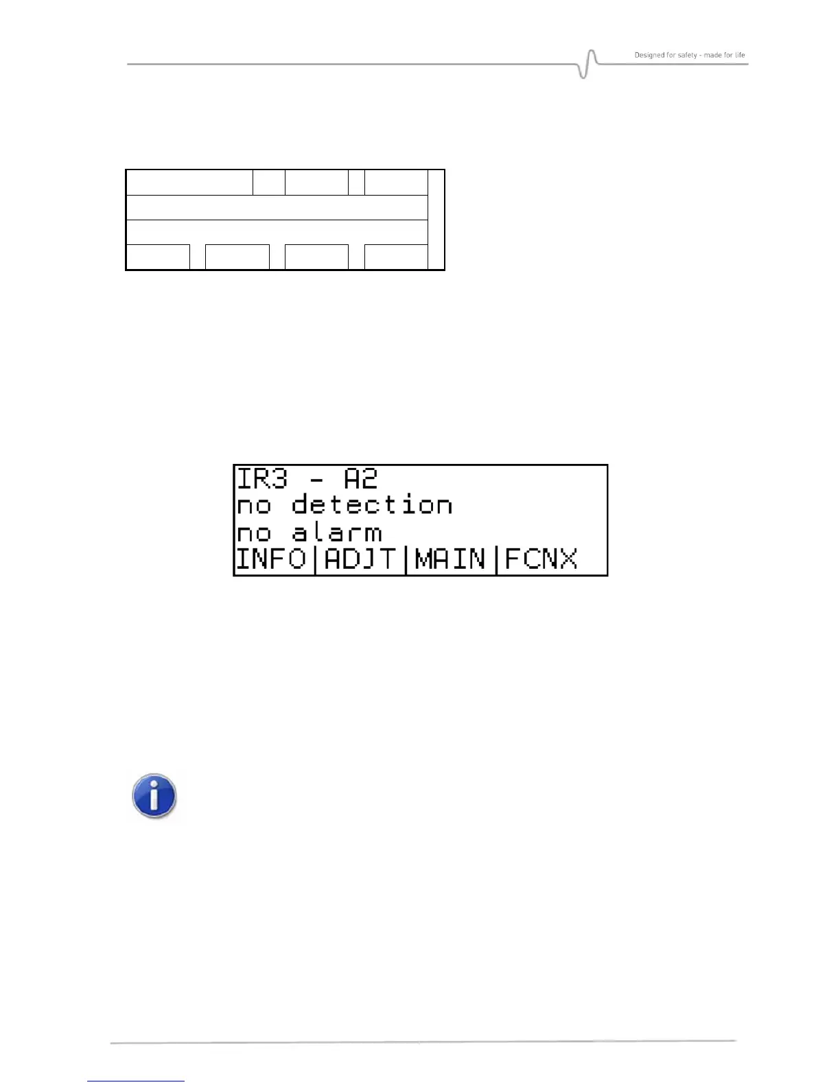 Main screen displays identity and state of the detector.