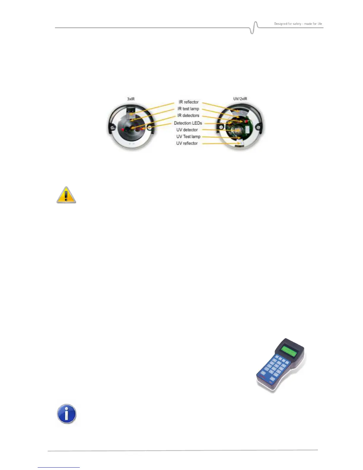 of two LEDs located in front of the detection cartridge. Information and detector status is