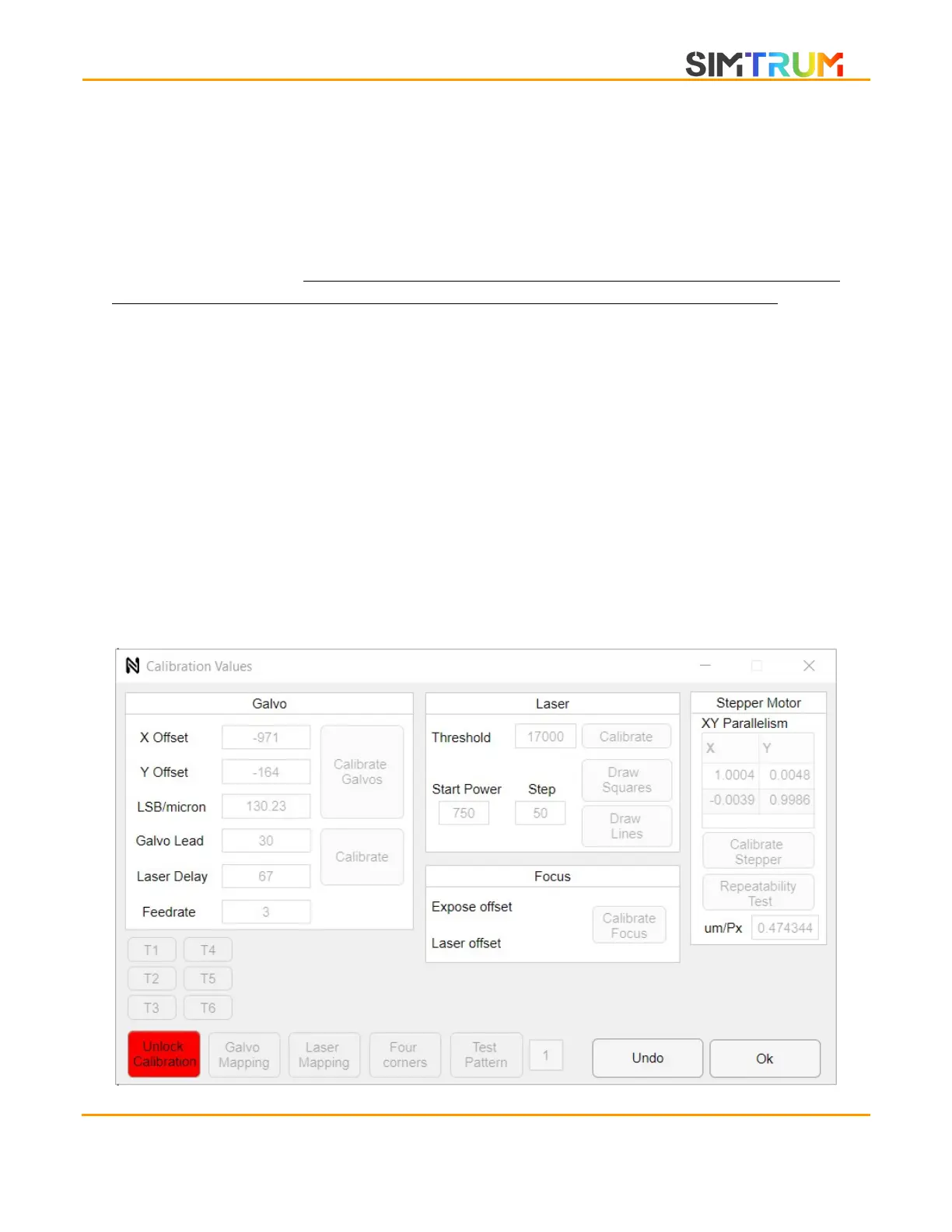 following window will pop up. The calibration buttons are greyed out. Upon clicking the unlock