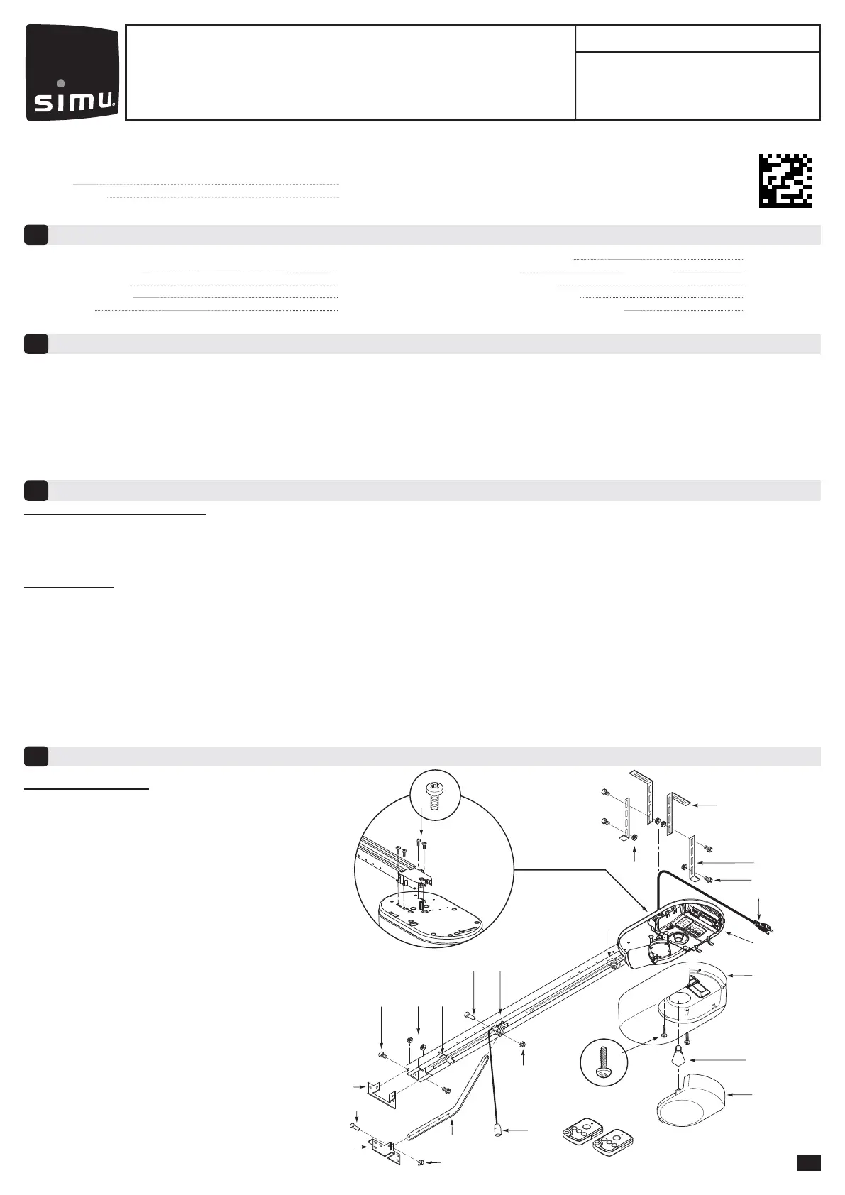 This product is a motorisation for vertically opening garage doors, for residential use as defi ned in standard EN60 335-2-95, with which it complies. The main purpose of these instruc-