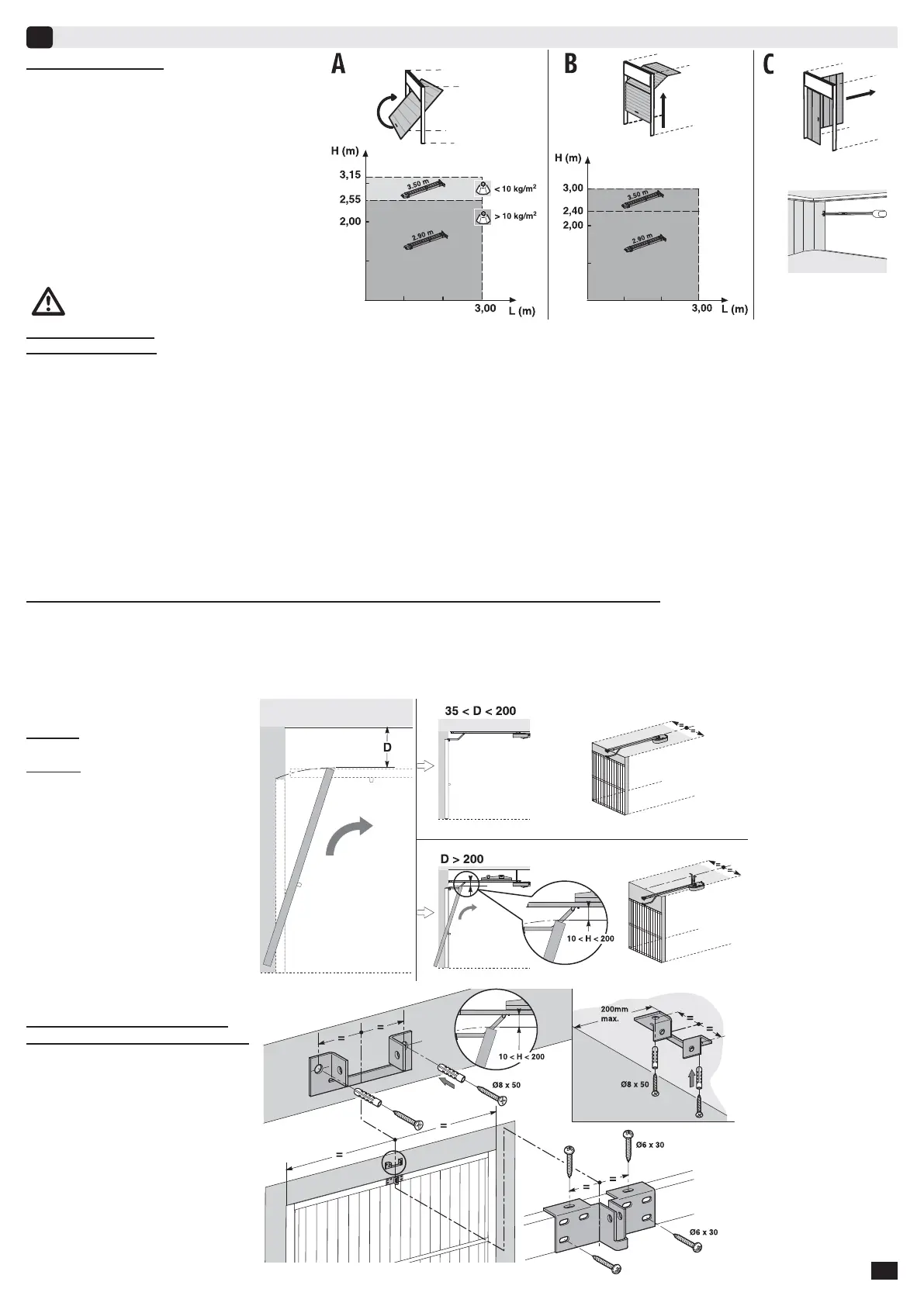 - An den Gebäudeteilen Ihrer Garage (Mauern, Sturz, Wände, Querträger, Schienen des Tores usw.) kann GM800 solide befestigt werden. Diese müssen gegebenenfalls
