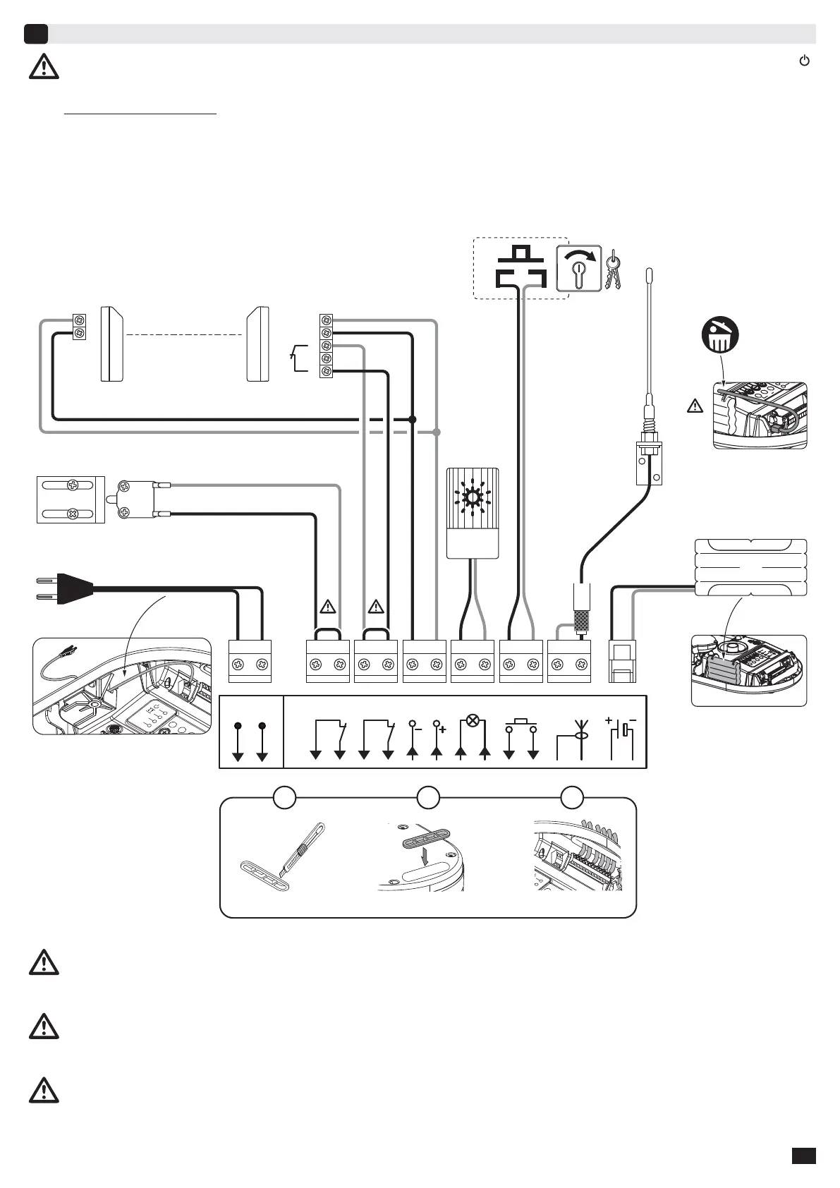 ** Lichtschranken (6): Beim Einbau der Lichtschranken muss die Empfängerzelle (CR) zwischen den Anschlüssen 5 und 6 angeschlos-