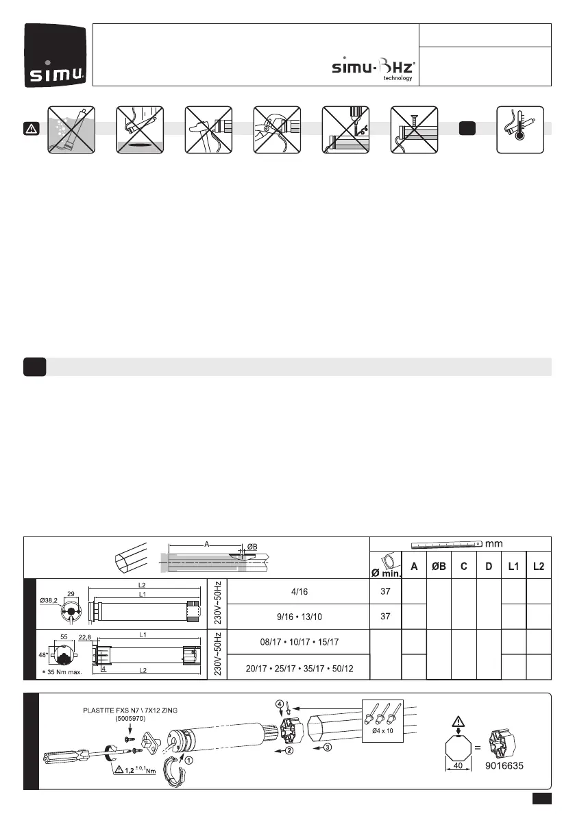 SIMU. De installateur moet de klant informeren over de voorwaarden voor het gebruik en het onderhoud van de motor