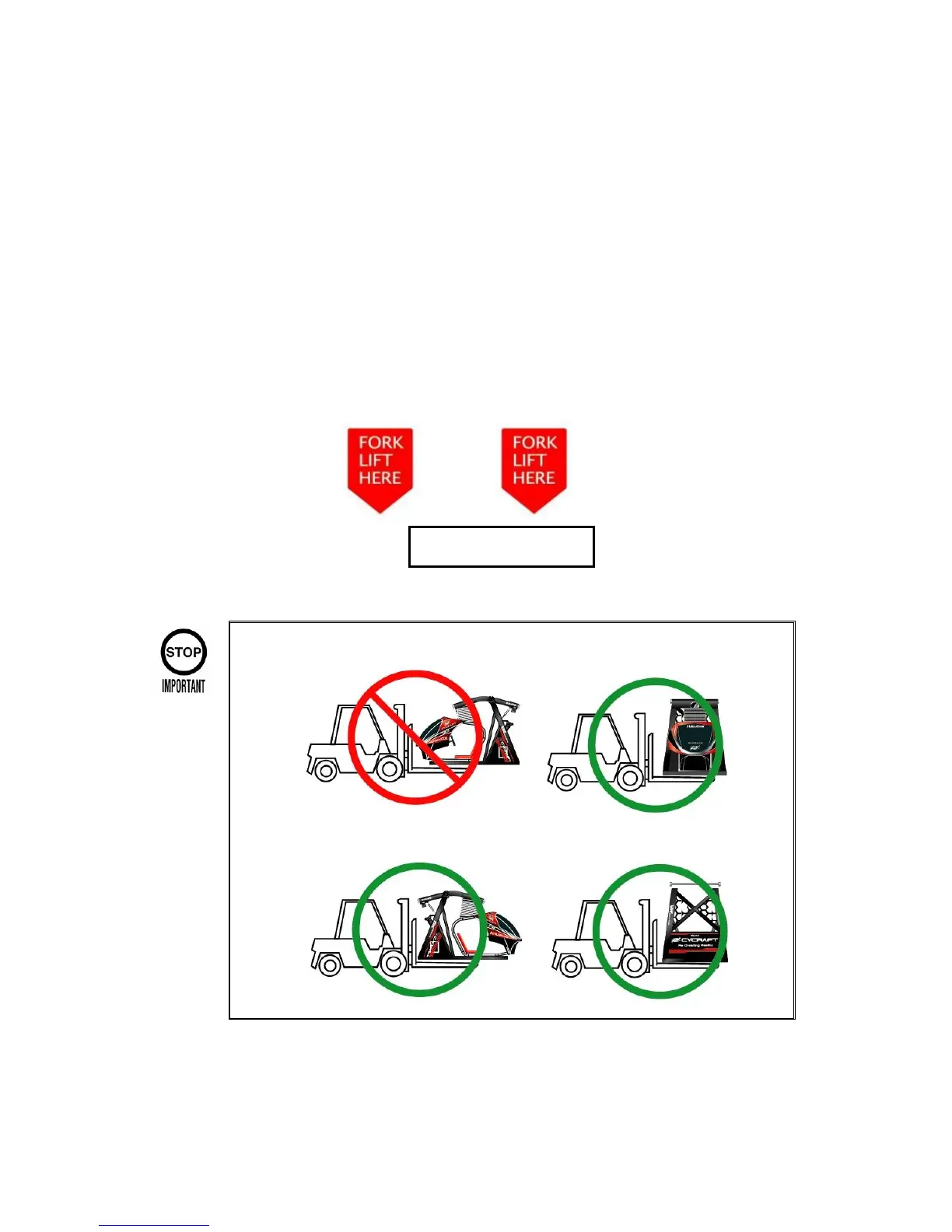 2) Insert forklift from the rear of Cycraft or from the side. DO NOT INSERT FORKS