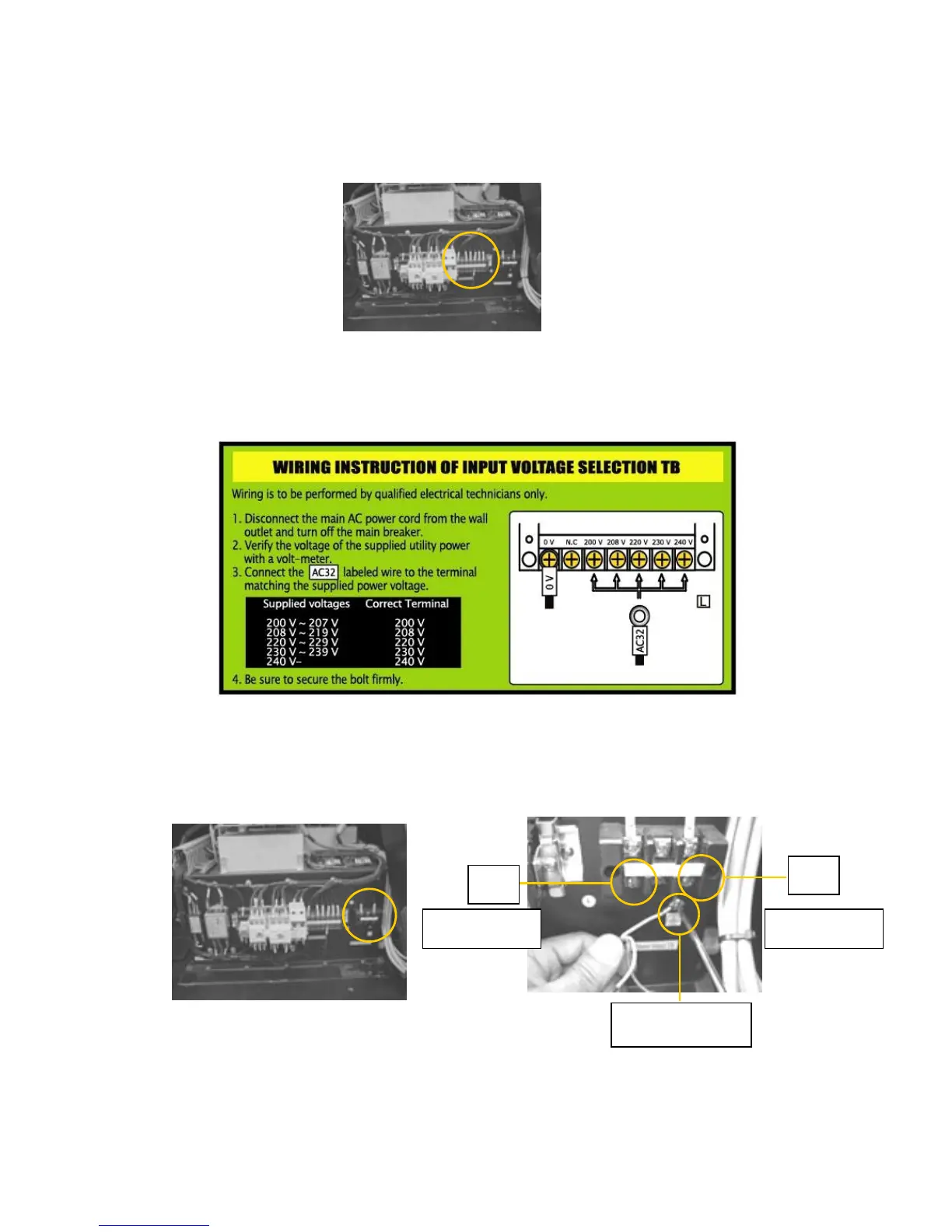 2) Locate the input voltage selection terminal block and the voltage selection wire