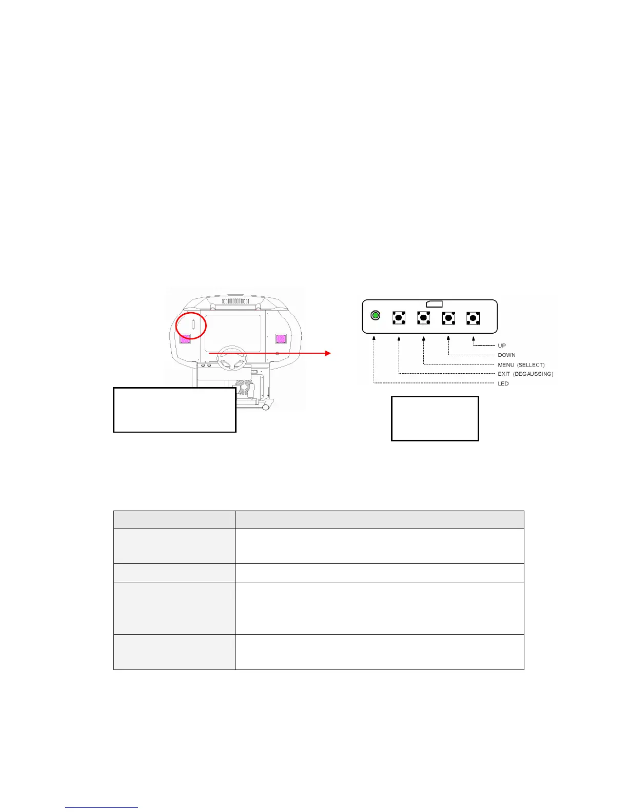 EXIT (DEGAUSSING) In the main menu, exits the VIDEO controls.