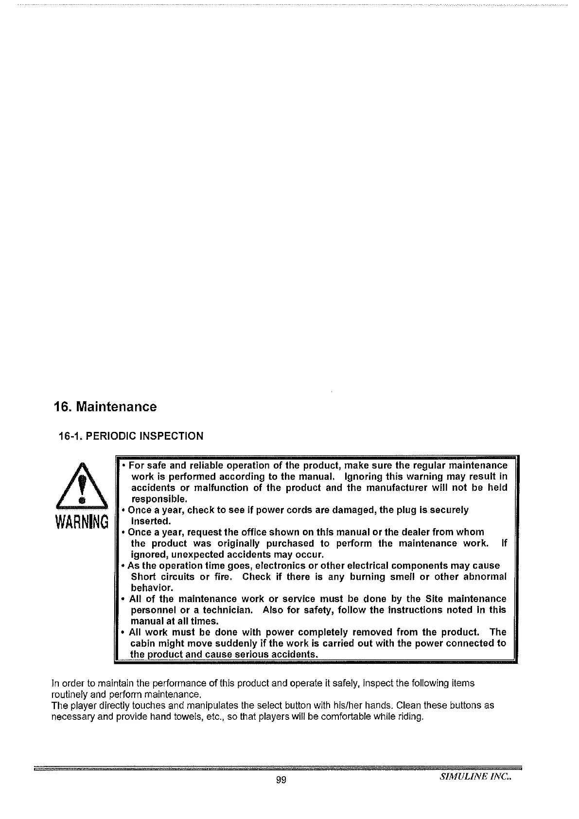 Simuline Mini Rider 2 - Maintenance Schedule; Periodic Inspection Schedule