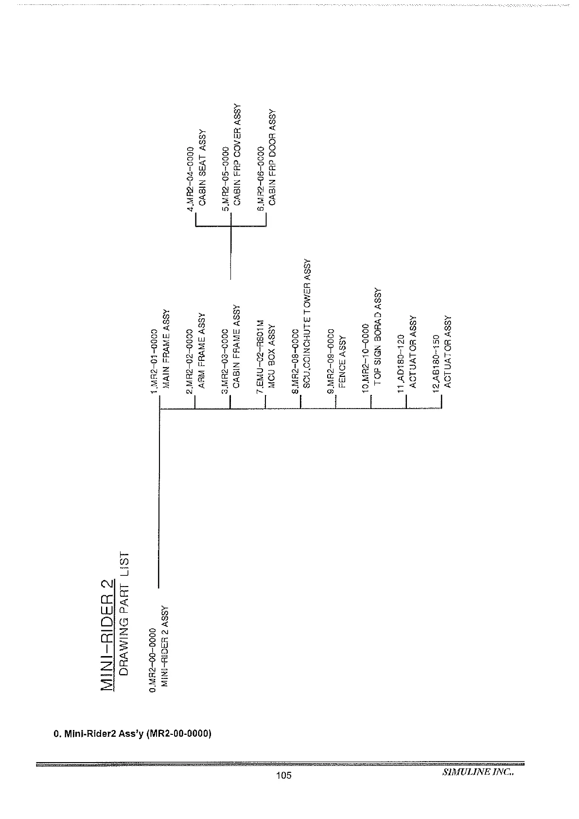 Simuline Mini Rider 2 - Mini Rider 2 Drawing Part List