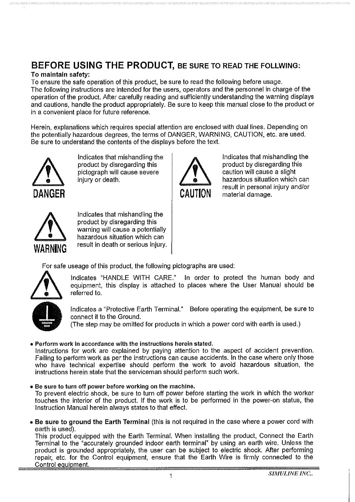 Simuline Mini Rider 2 - Before Using the Product: Safety First; Hazard Pictogram Explanations; Product Safety Pictographs