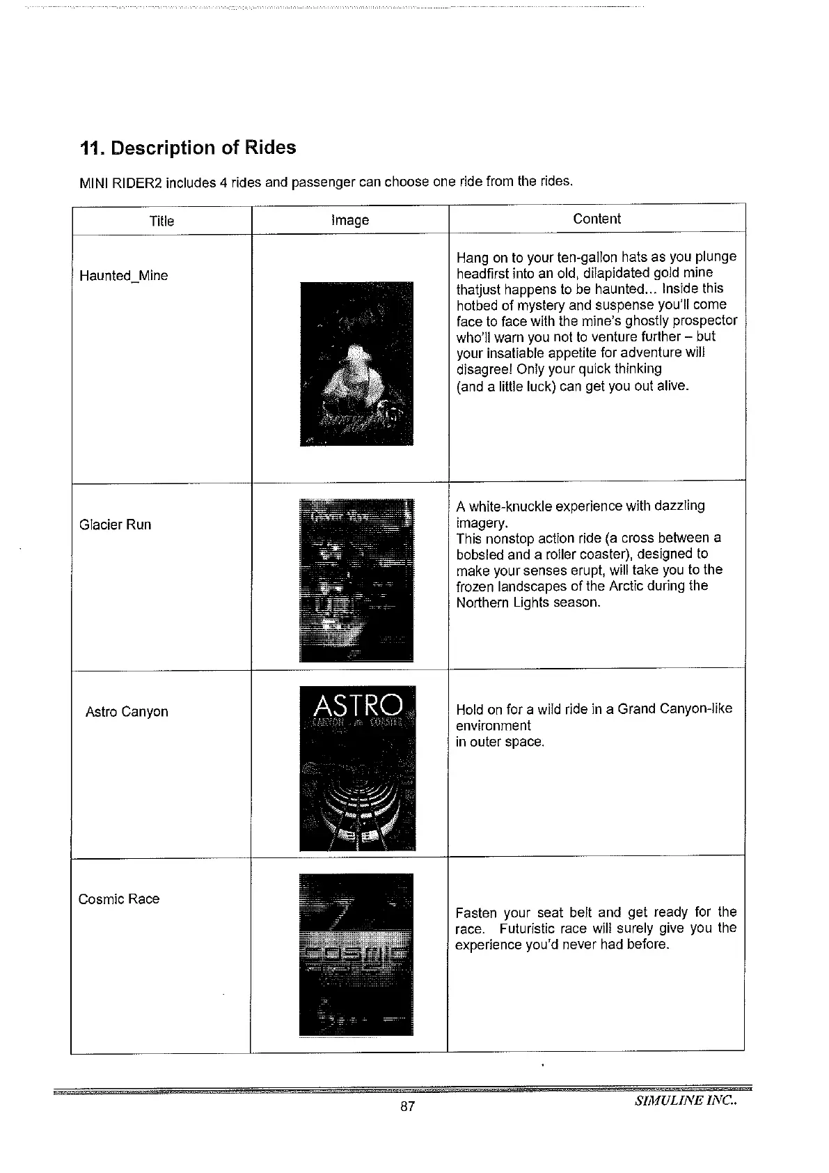 Simuline Mini Rider 2 - Ride Operation Instruction; Pre-Ride Procedures; Ride Selection and Start