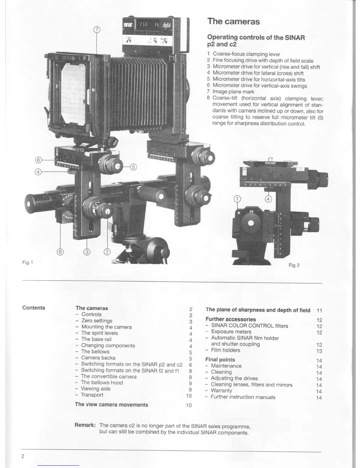 Sinar f2 - Operating controls of the SINAR p2 and c2; Zero settings