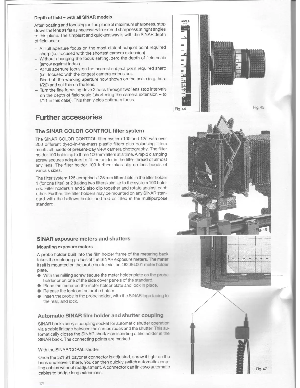 Sinar p2 - Depth of Field - With All SINAR Models; Further Accessories; The SINAR COLOR CONTROL Filter System; SINAR Exposure Meters and Shutters