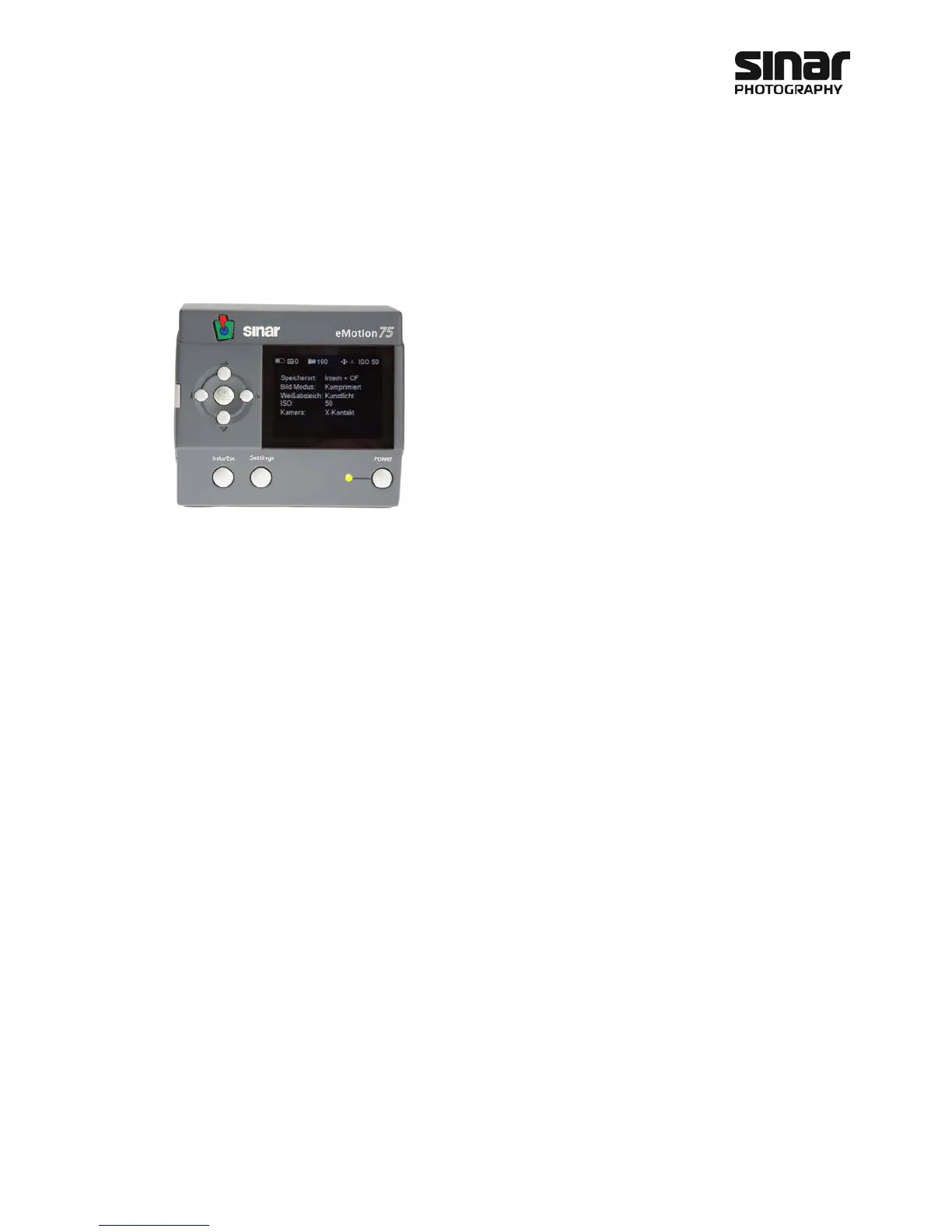 sic settings for the Sinarback eMotion. The other one is the Image Control menu, which is called up via the