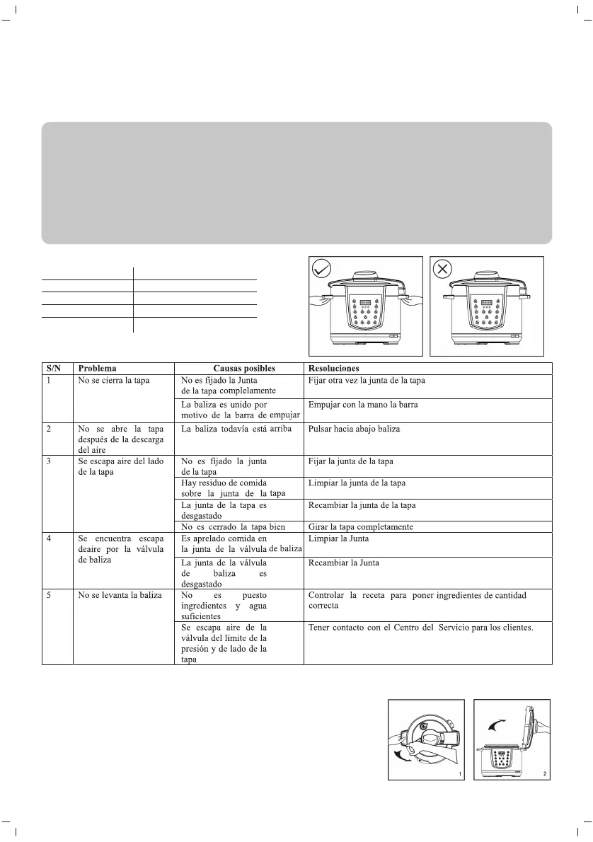 el Iiquido de la comida caliente puede cusar quemaduras echando de la válvula para descargarse la presión. Estar