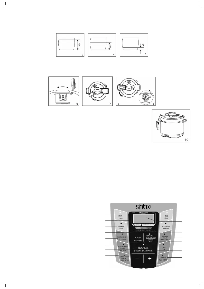 3. Estar seguro que el depósito desmontable para cocinar y la placa del calentamiento son secos antés de meter el