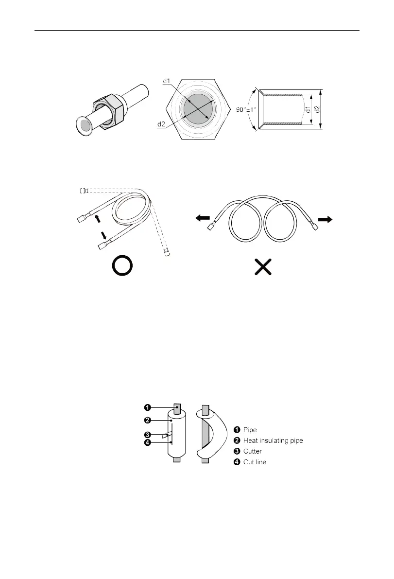 (2) Do not bend the pipes in an angle more than 90°.