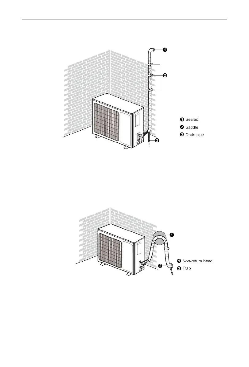 (2) If the outdoor unit is above the indoor unit, arrange the pipeline according