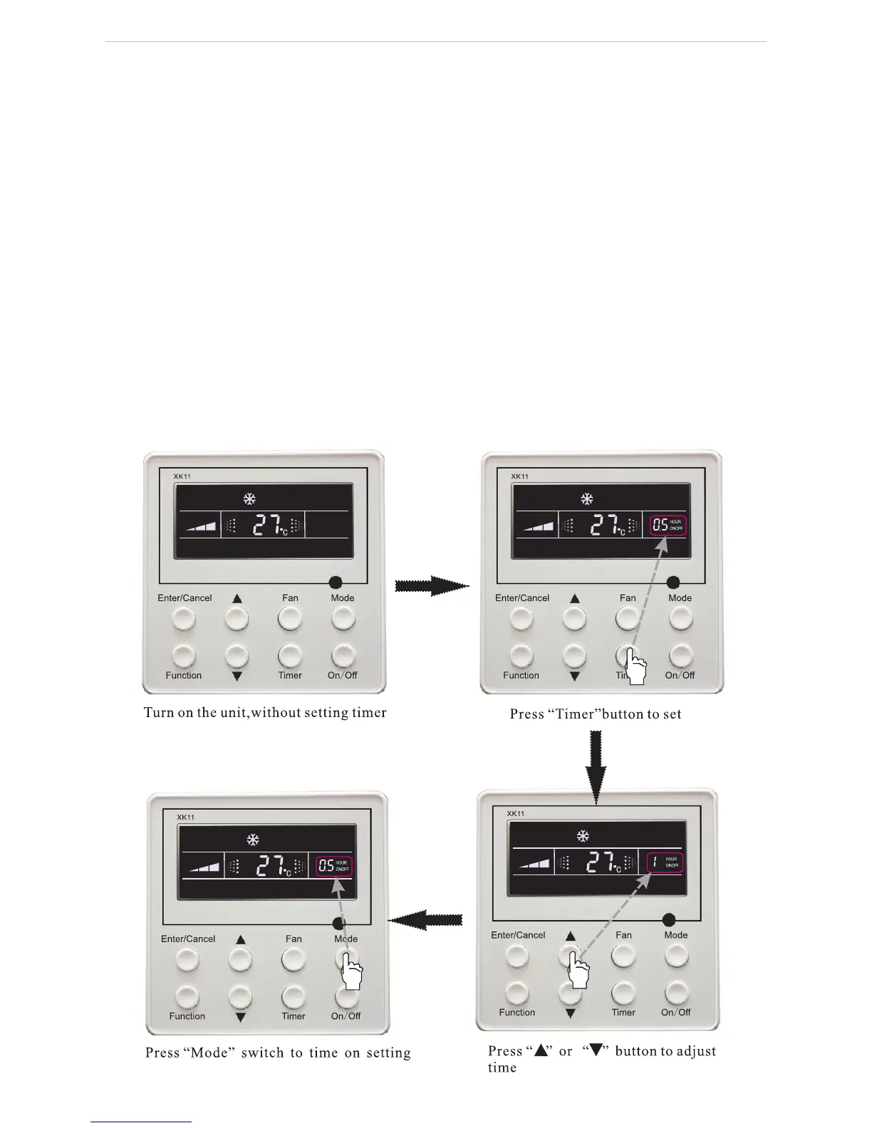 button to adjust timer off and then press Timer to conrm. When LCD displays:“xx. Hour on off ”; xx. Hour