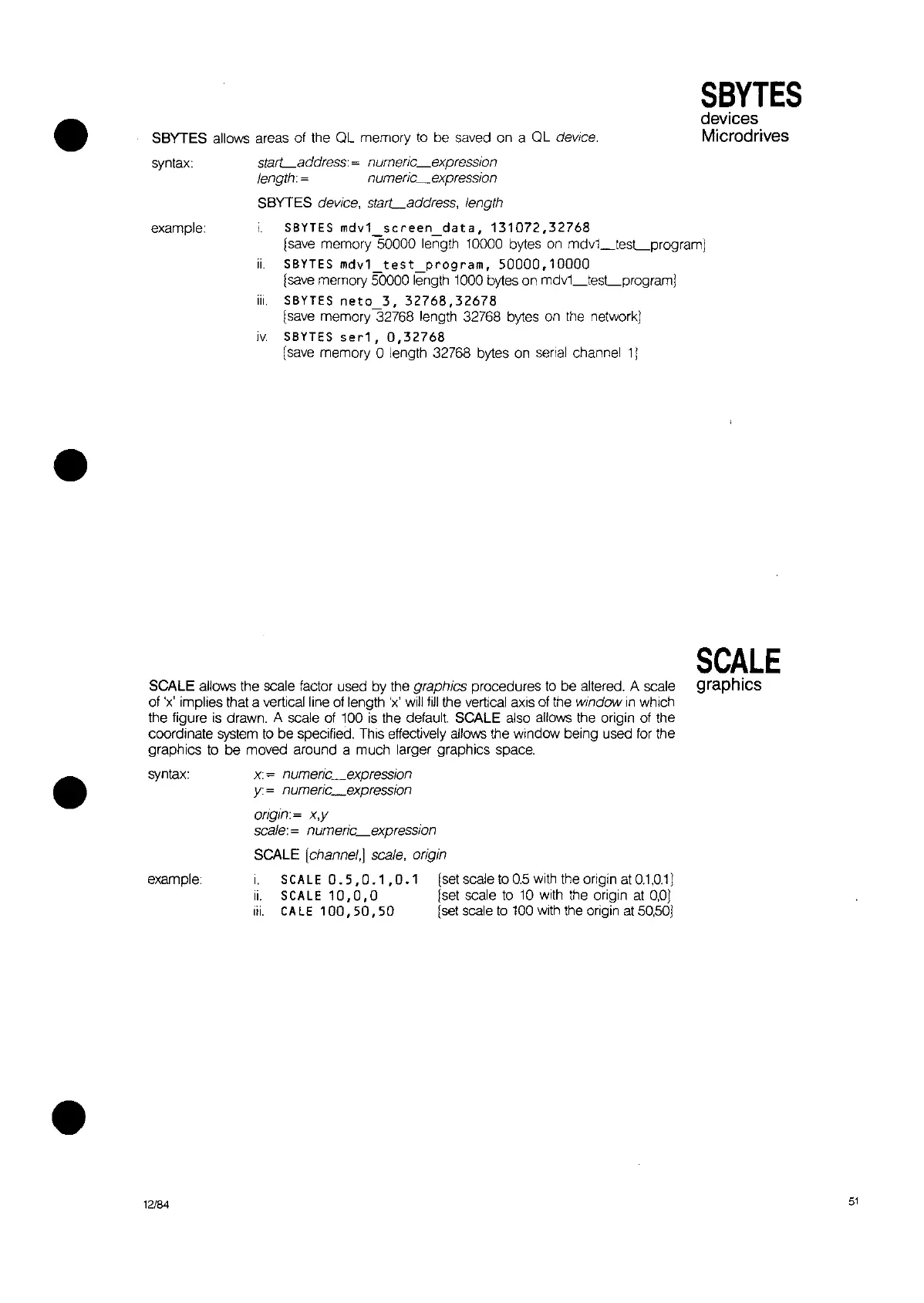 SCALE (channel,] scale, origin