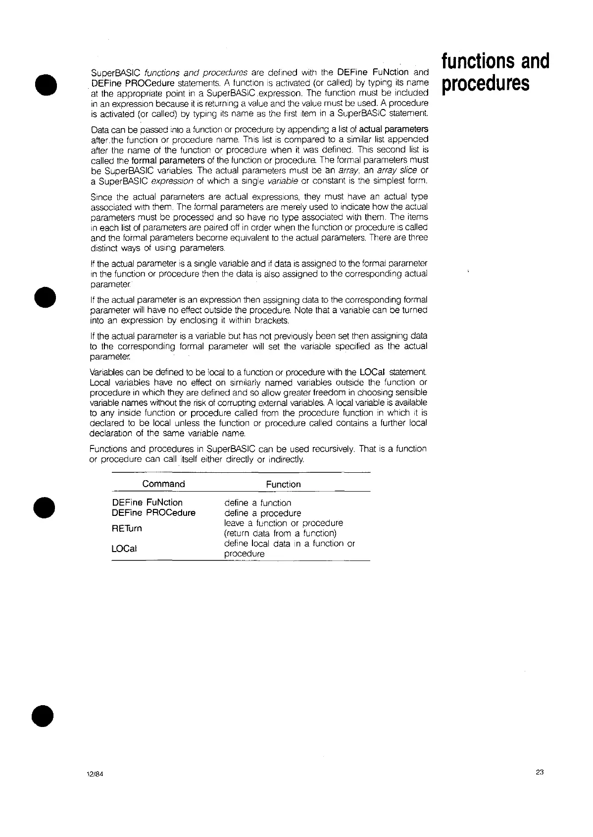 be SuperBASIC variables The actual parameters must be