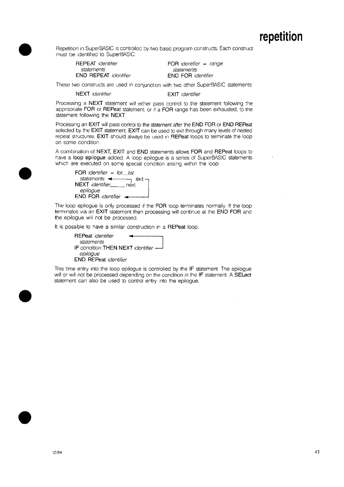 conjunction with two other SuperBASIC statements: