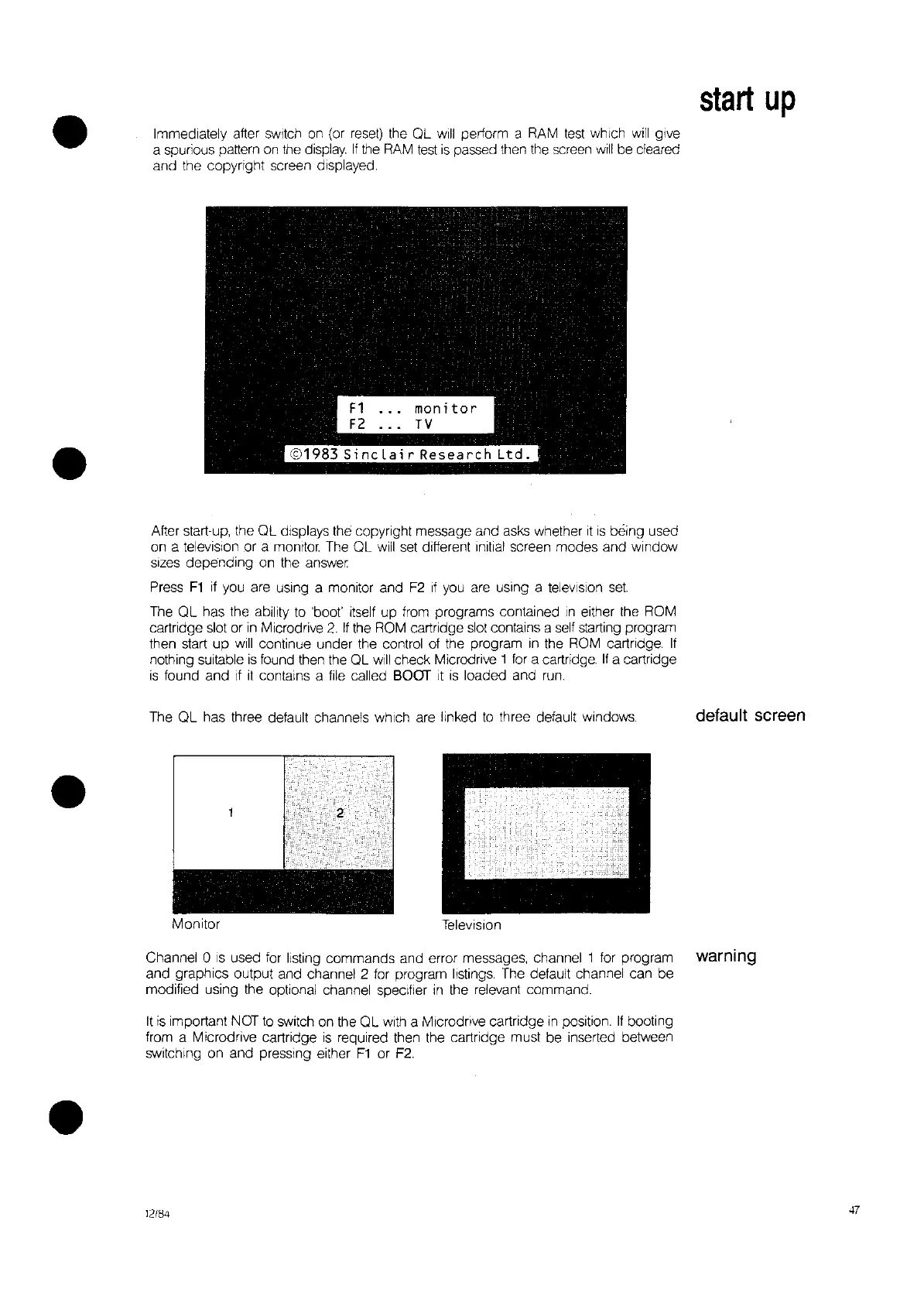 listing commands and error messages, channel 1