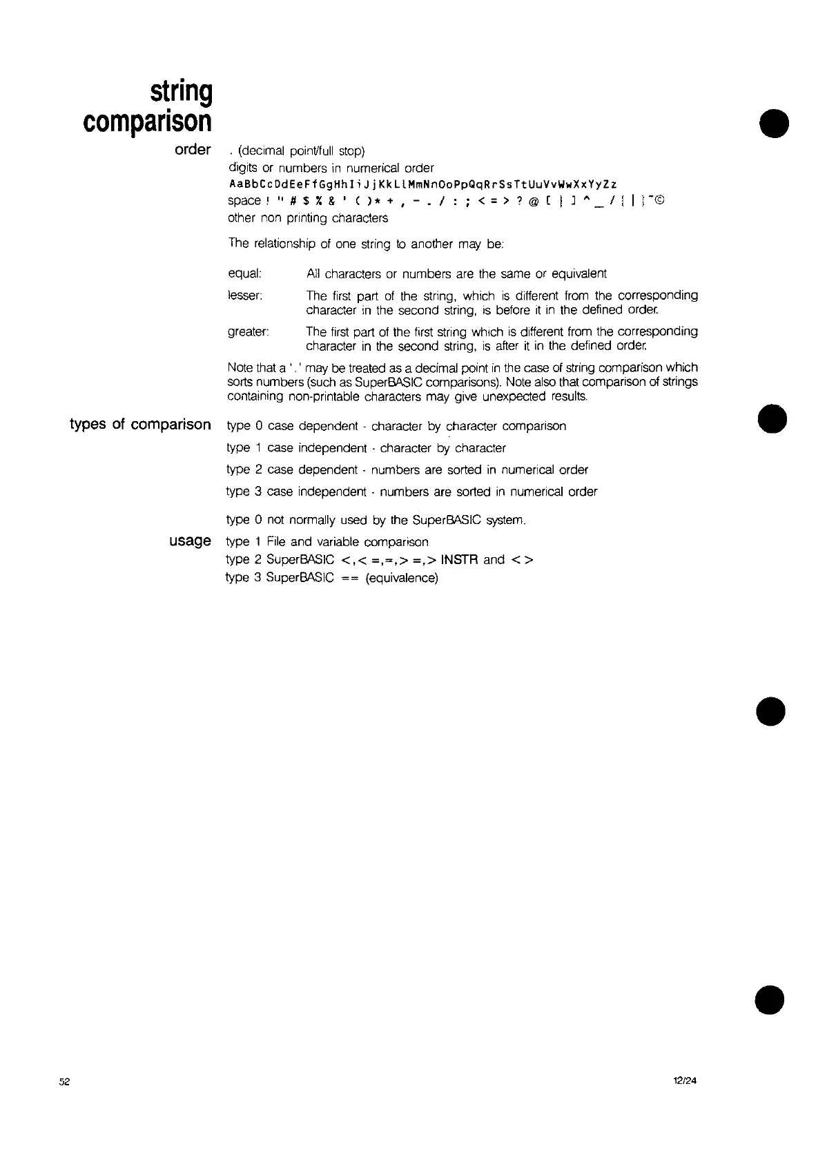 SuperBASIC comparisons). Note