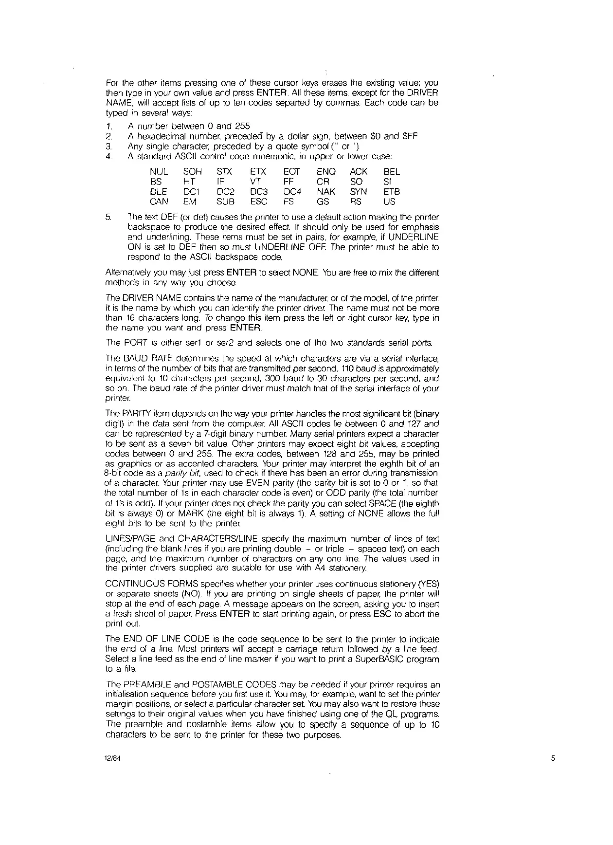 CONTINUOUS FORMS specifies whether your printer uses continuous stationery