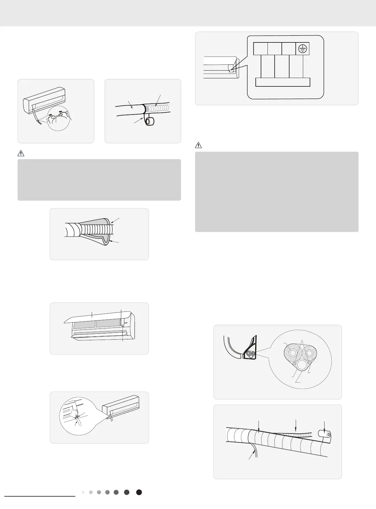 (4) The liquid pipe and gas pipe should be bound separately at the