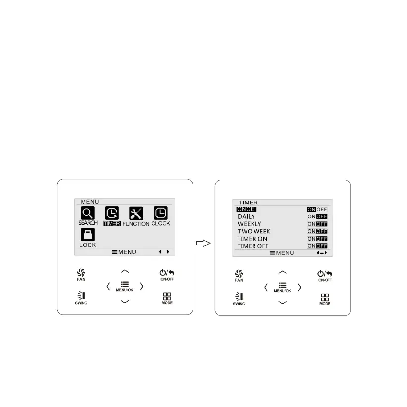 Press MENU button to enter timer setting page. Press “