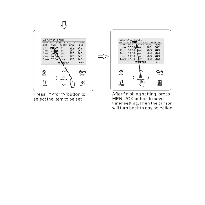 week timer setting and then press MENU button to enter two week timer