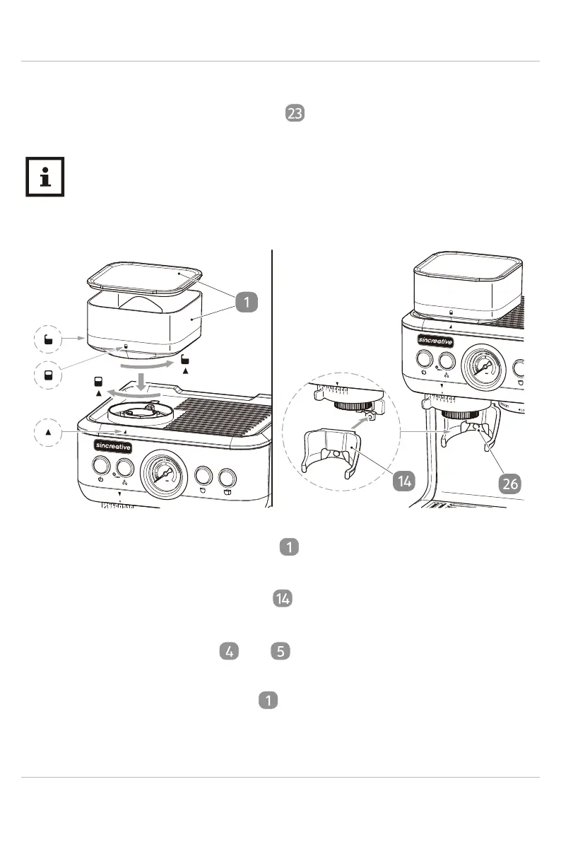 The grinding mechanism is removed for transport. Attach the