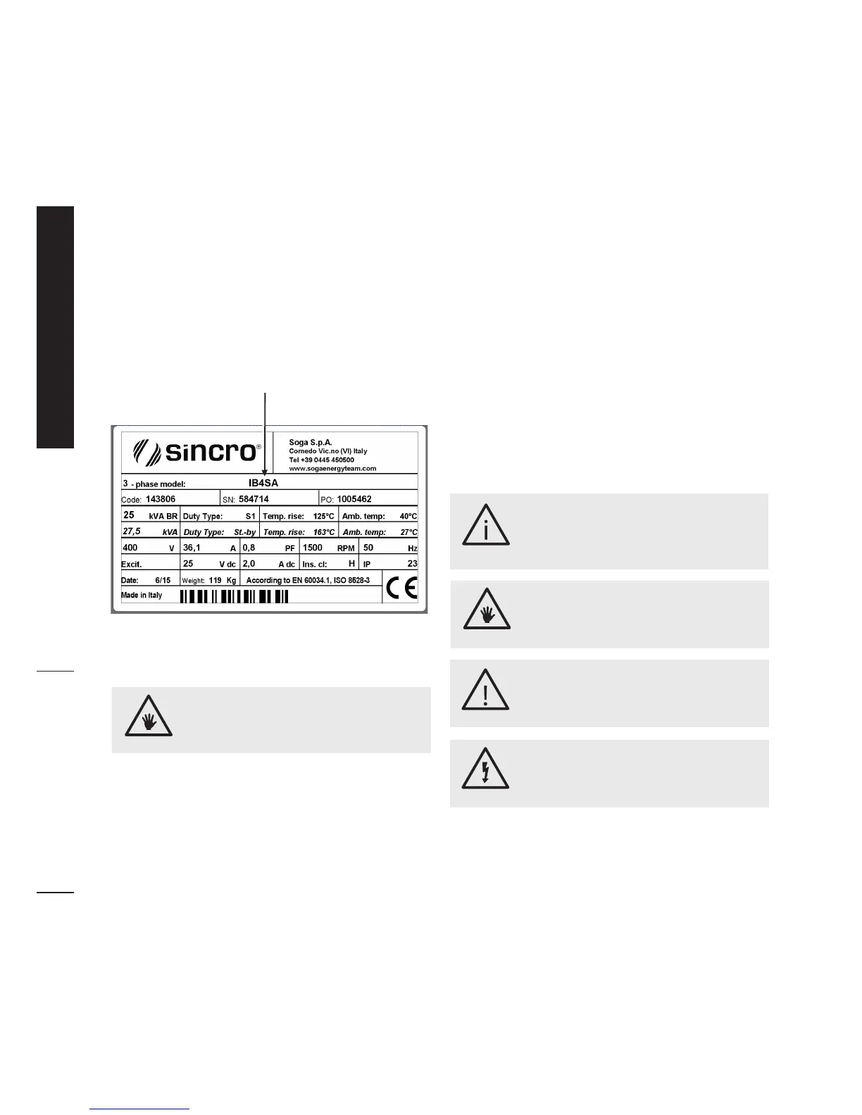WhencontactingSincro,alwaysreportthegenerator