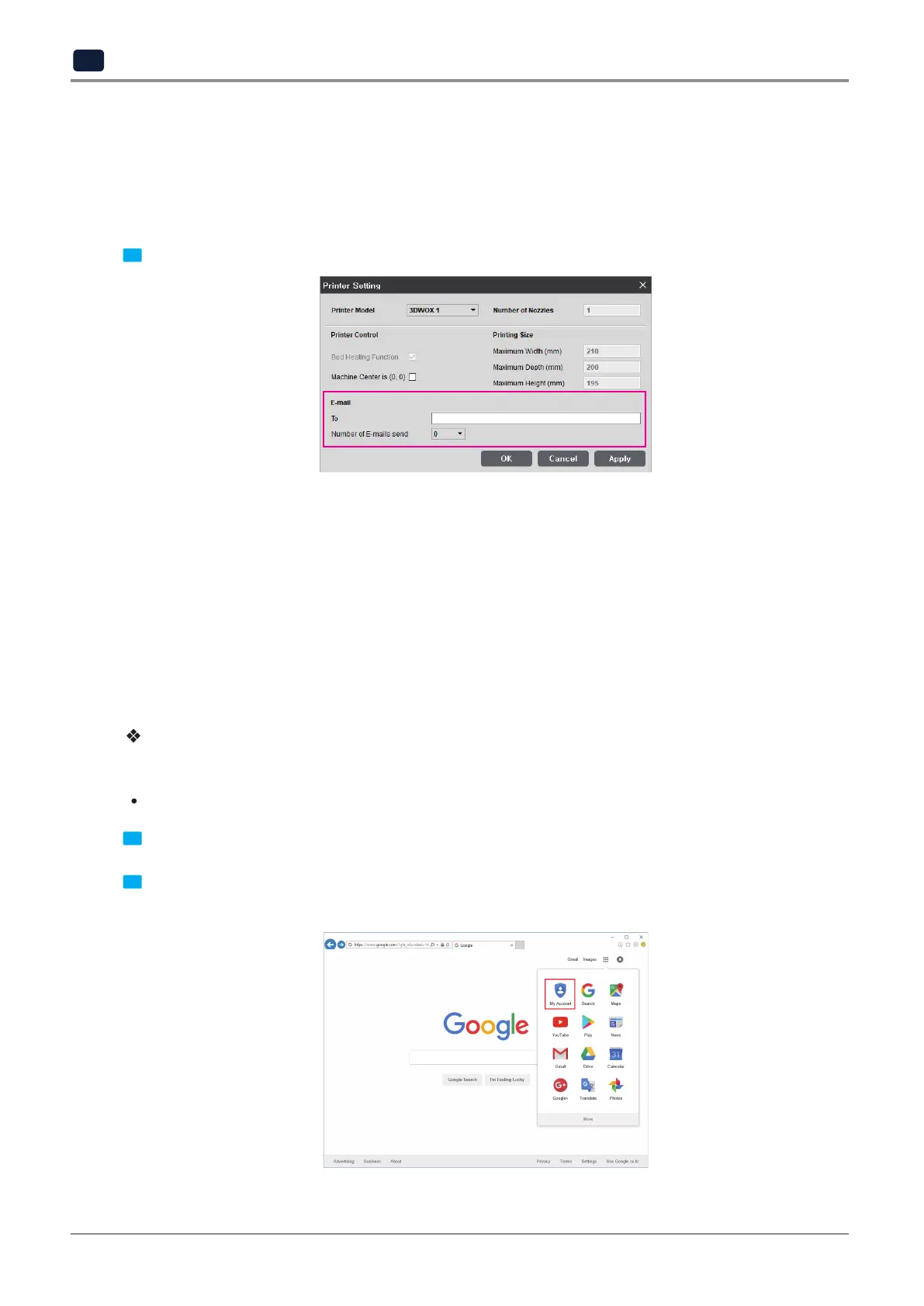 4 Configure the recipient email information from the 3DWOX slicer program.