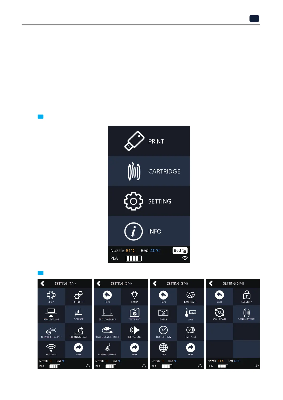 1 Press the [SETTING] button on the Home screen to access settings.