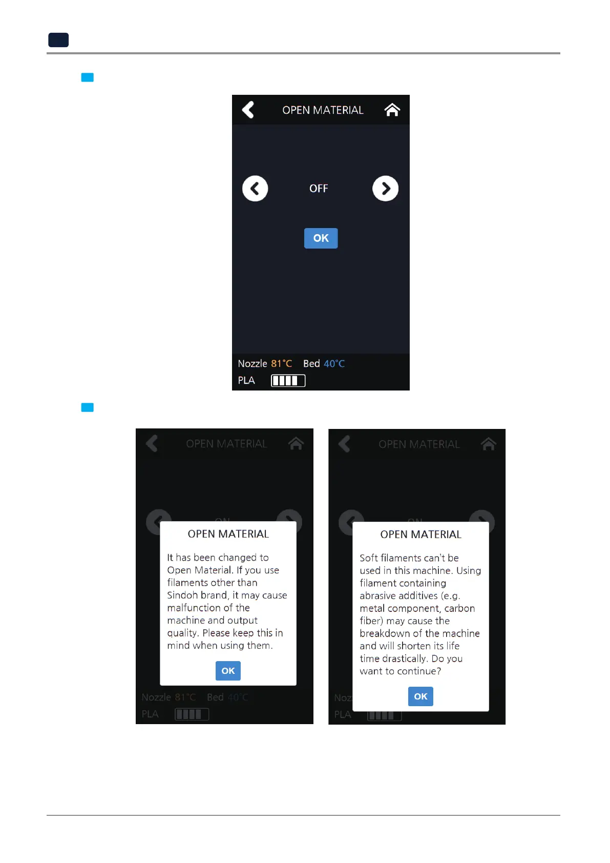 4 Read the OPEN MATERIAL guide pop-up and then press the [OK] button.