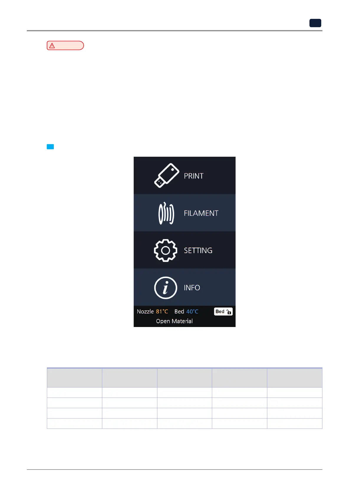 Improper usage of a third-party filament may cause device failure and poor printing quality.