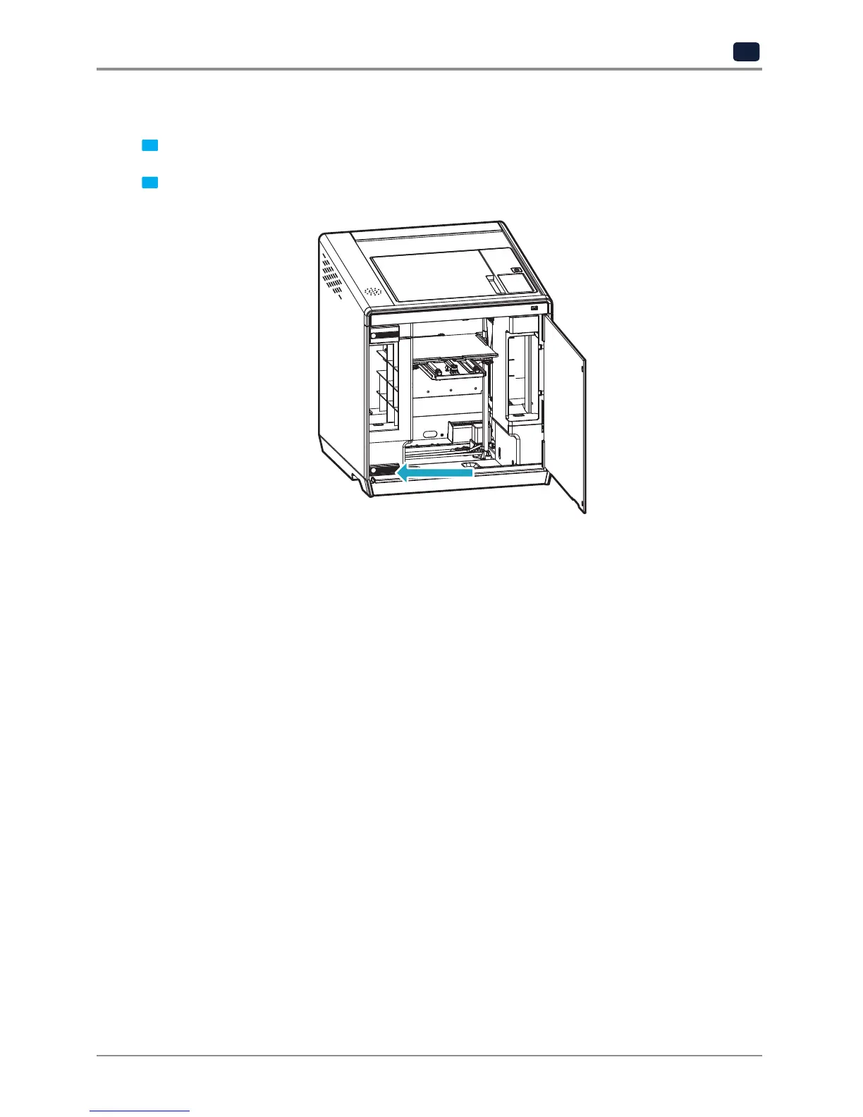2 After the bed is lowered, remove printed output and turn the power on.