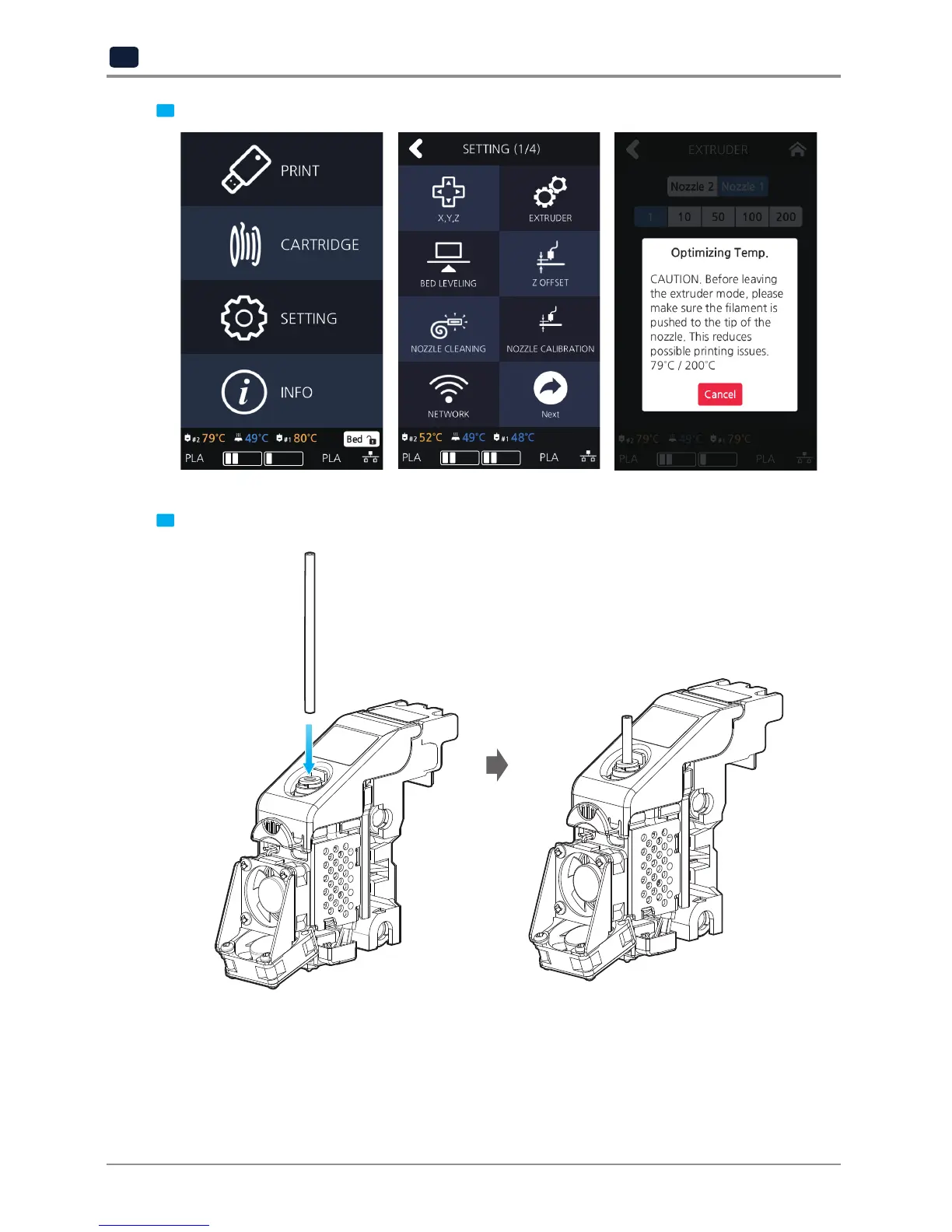 3 Press [Setting] - [Extruder] to enter Extruder mode.