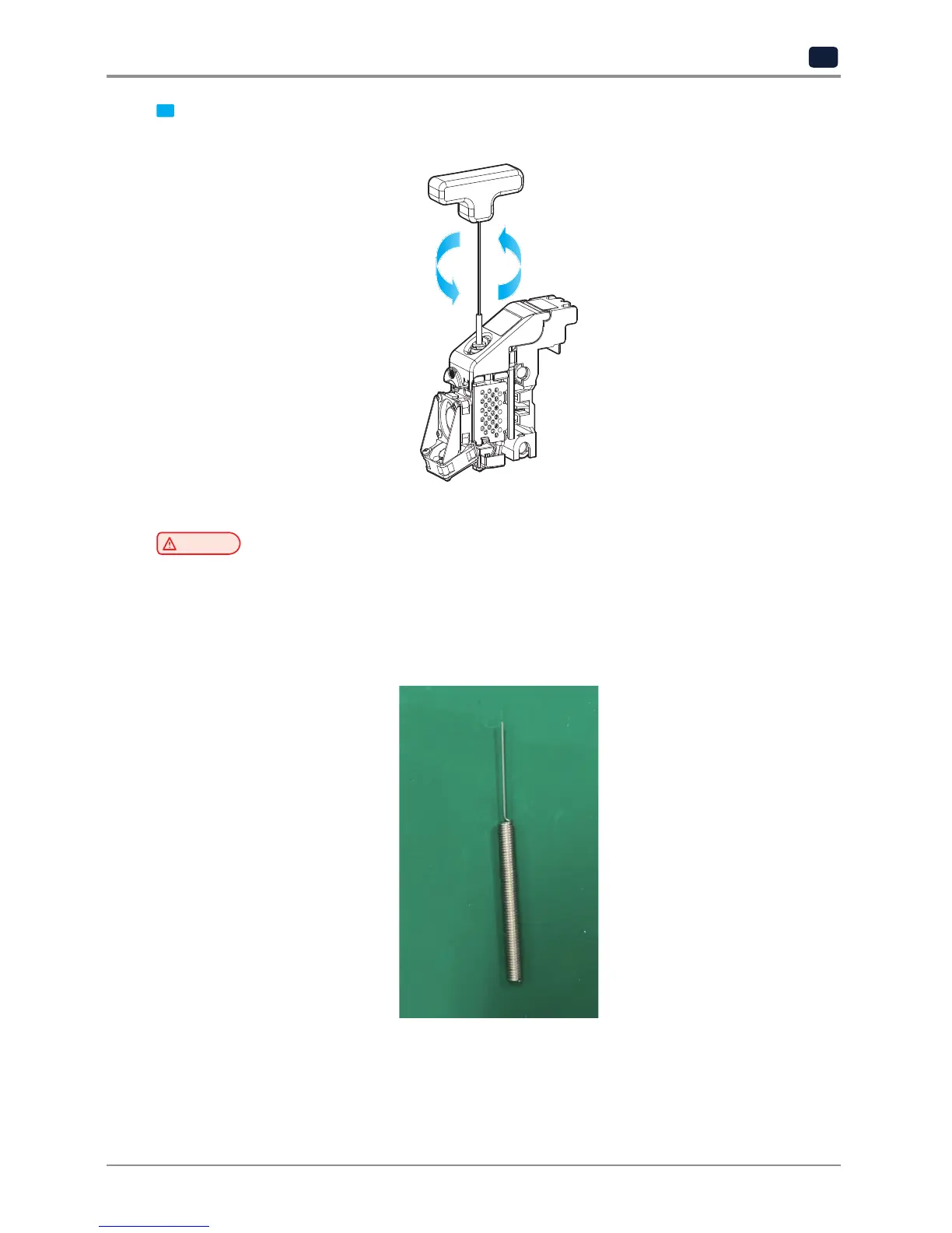 If the filament does not come out of the nozzle even though the nozzle cleaner is used, use the nozzle spring pin to