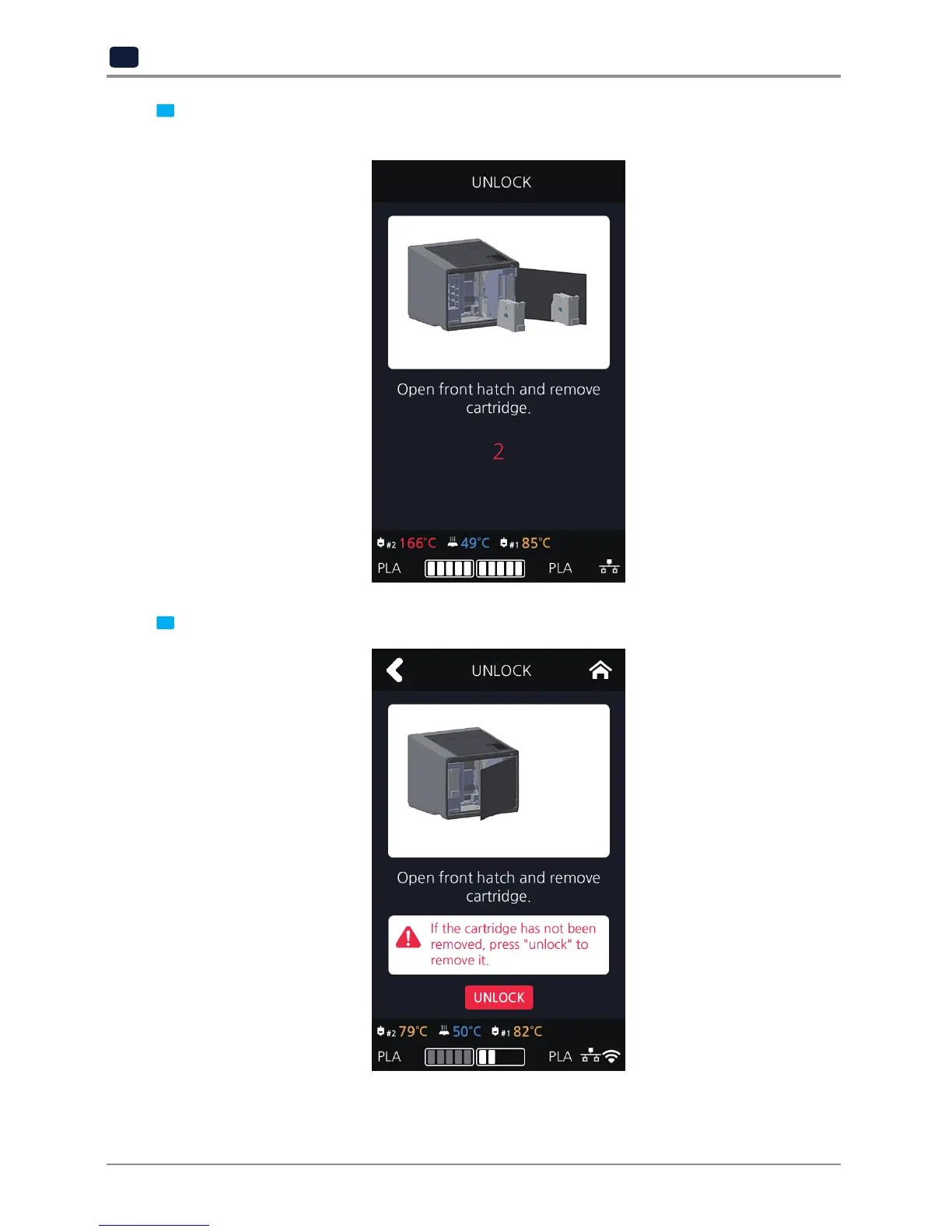 3 For 10 seconds [LOCK] state is deactivated and the user can detach cartridge from printer.
