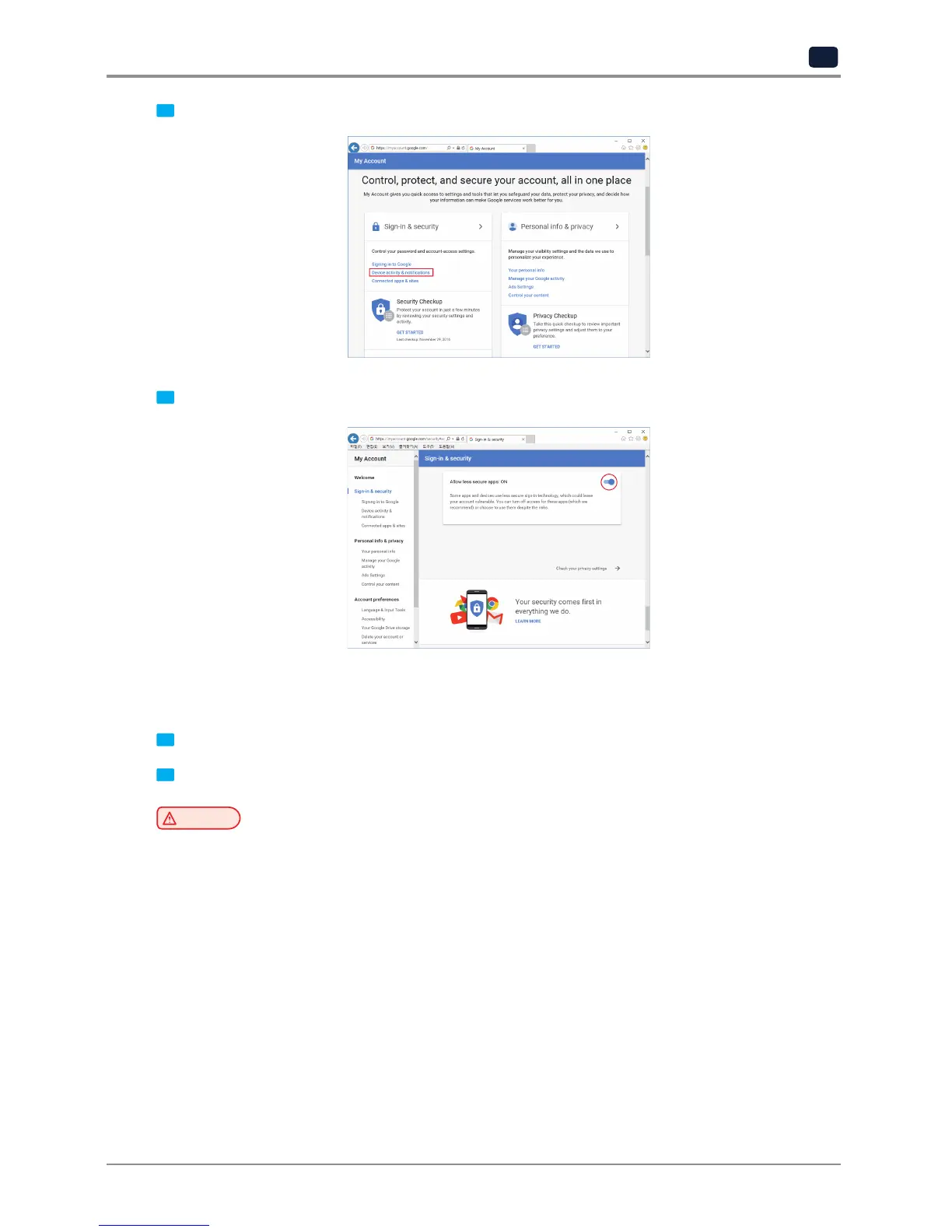 4 Scroll down and there is a "Allow less scure apps" criteria. Set it to "On" to enable the option.