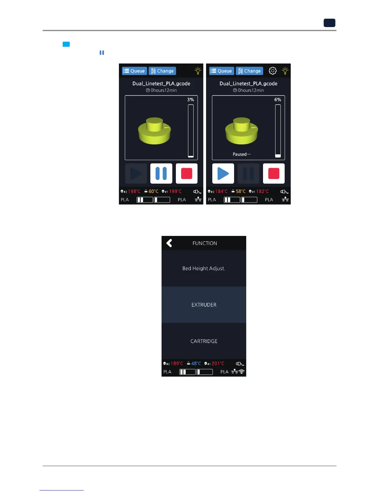 ①This menu is used to adjust the height of the bed during printing for a high-quality outcome.