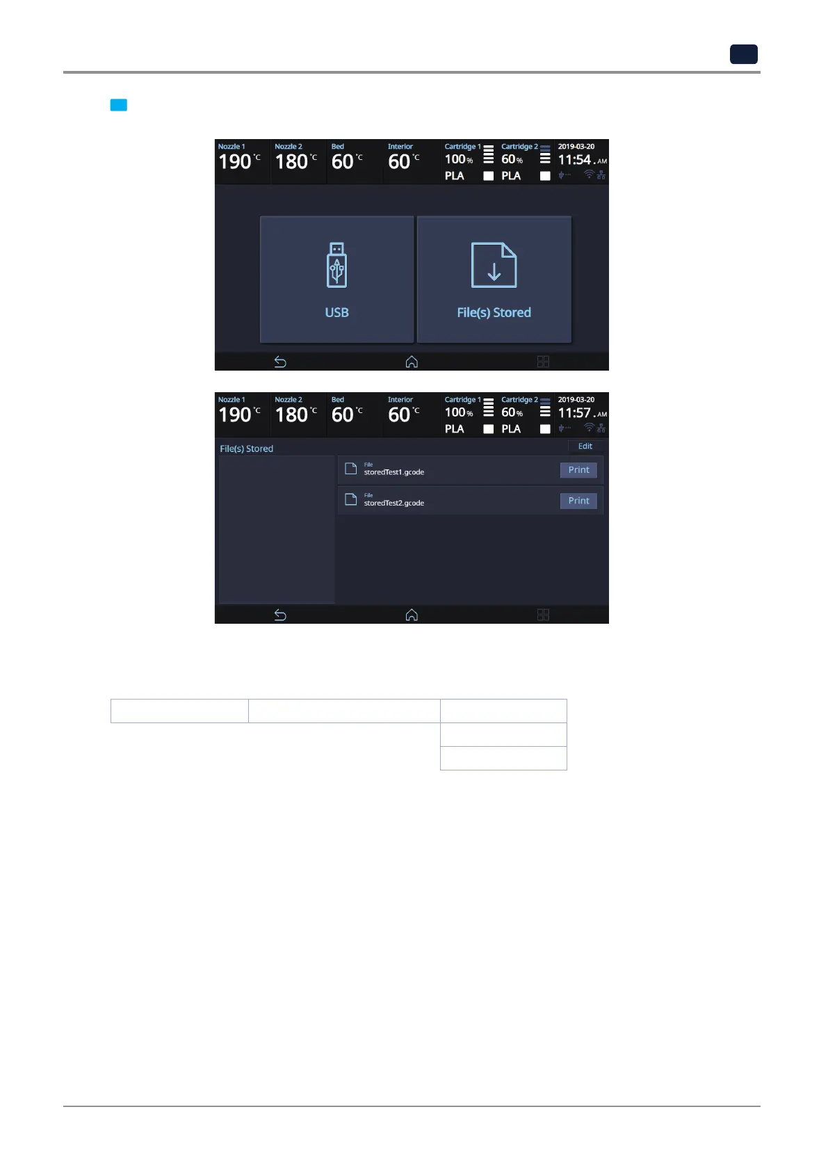 2 Press the [Files Stored] button, and select the file you want to print from the list.